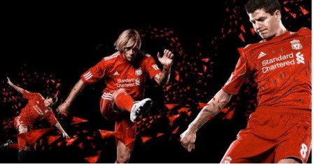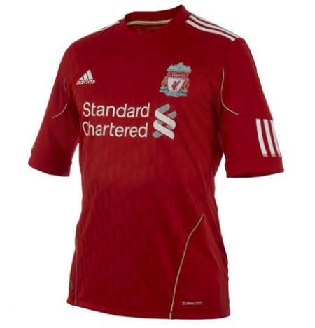 This is the new Liverpool FC home shirt for 2010-12. Liverpool’s home shirt changes every 2 years under Premier League rules and this will be the reds first new shirt featuring new club sponsor Standard Chartered.