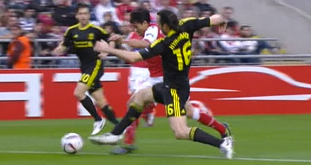 When Braga broke through in to the box, Kyrgiakos put in a clumsy challenge, and the referee correctly pointed to the spot.